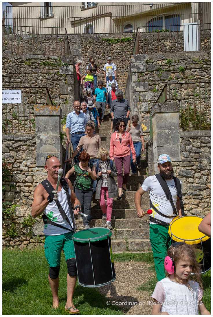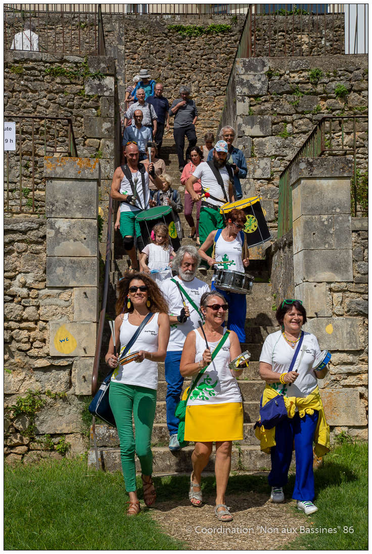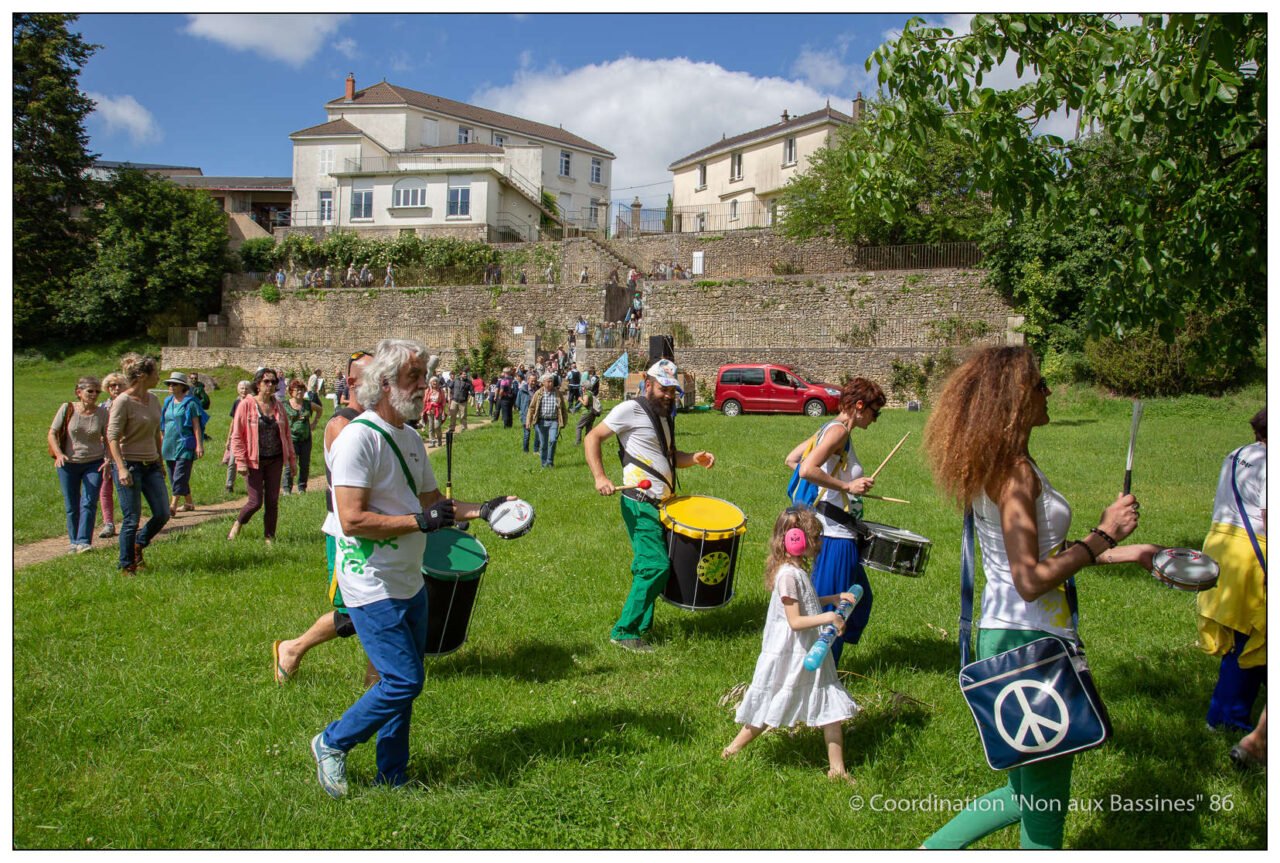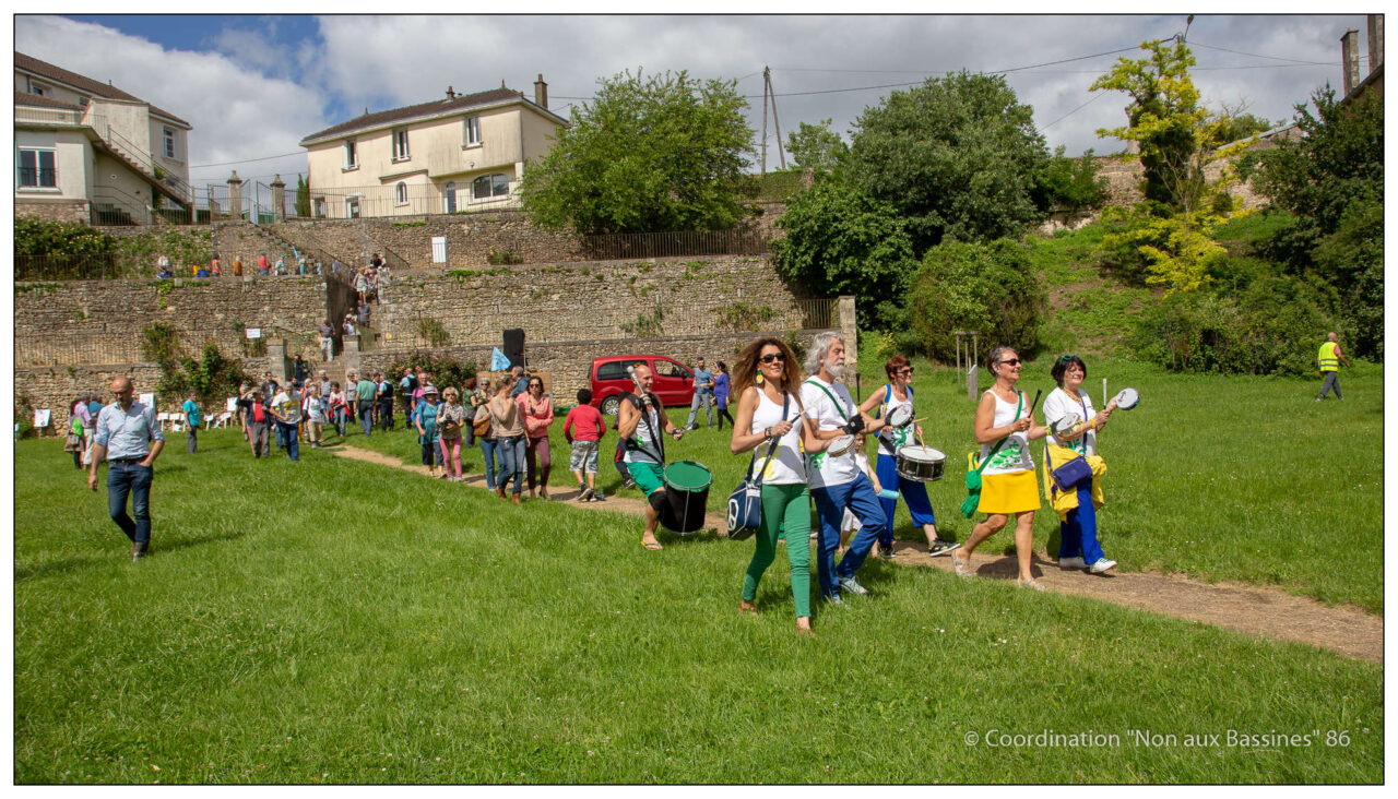 Sur place, autres artistes engagé-es, celles et ceux de la Batuca Braz qui nous ont accompagné pendant toute la loooongue manifestation jusqu’à une des bassines des Roches Prémaries Andillé. Un acte de solidarité fort, musical et … physique.