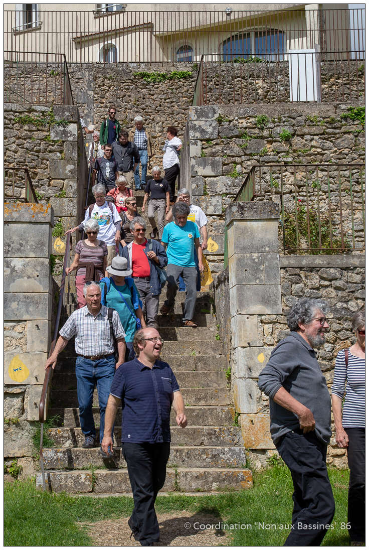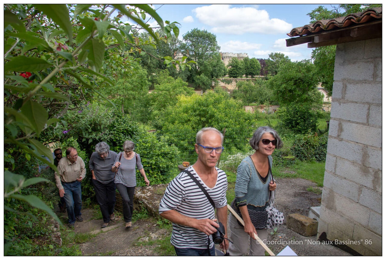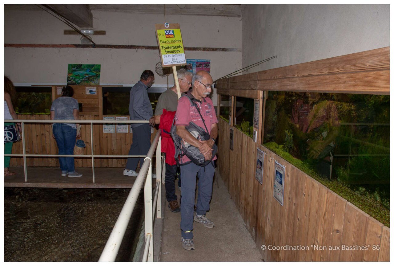Alban, animateur nature de la ville des Roches Prémaries Andillé (2000 habitant-es), a expliqué honnêtement et pédagogiquement la problématique des nappes phréatiques, des rivières et des bassines sur la commune, devant le lavoir municipal où sont effectuées des mesures qui, en théorie, devraient être assurées par les irrigants… Quand on pense aux engagements des irrigants que Grand Poitiers a pris récemment pour argent comptant, on croit rêver.