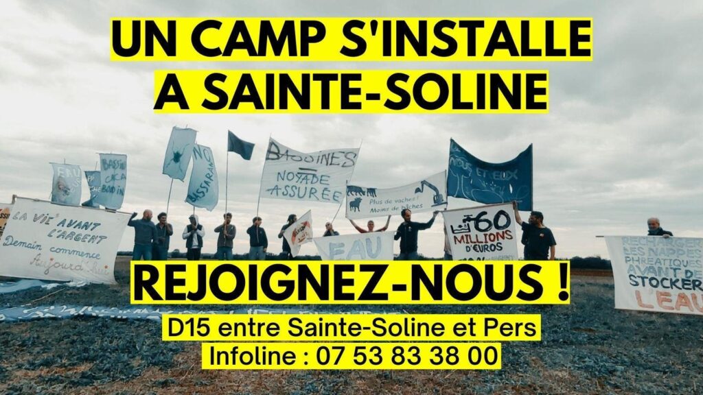 Toutes les infos pratiques (arrivée, repas, dormir…) sont sur https://lessoulevementsdelaterre.org/blog/29-30-octobre-pas-une-bassine-de-plus