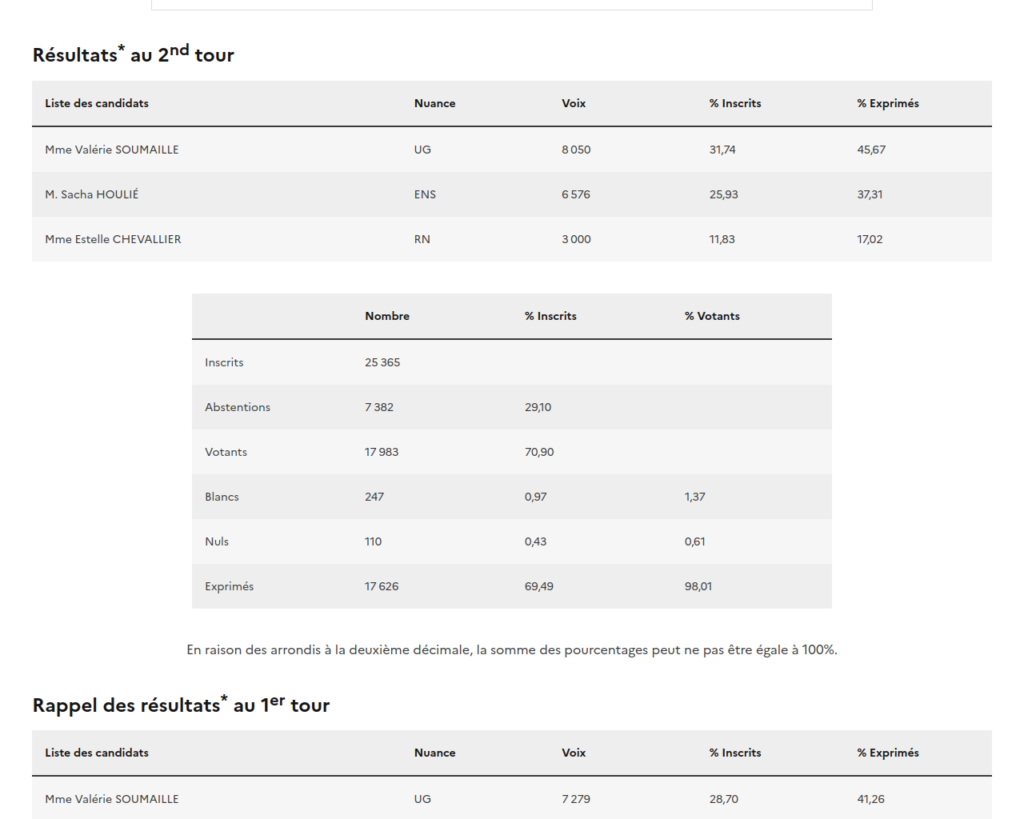 Un lecteur attentif, Yves B., a repéré que sur le site du ministère de l’intérieur c’est Valérie Soumaille qui est élue !