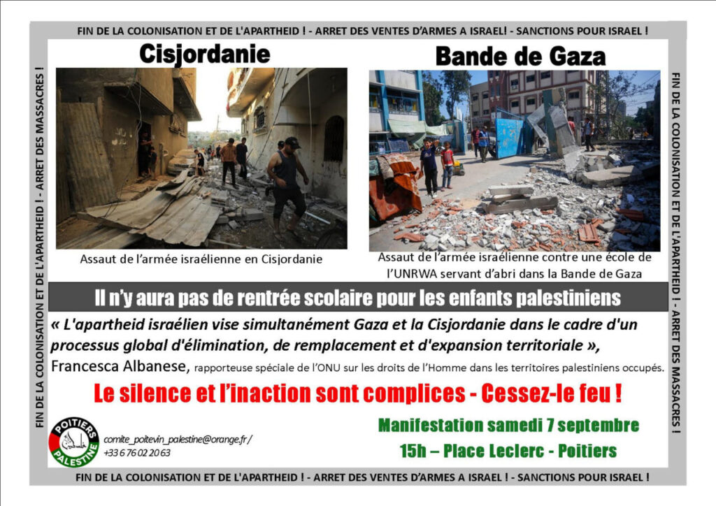 Un rassemblement unitaire est appelé Place du Marché à Poitiers ce samedi 7 septembre 2024.