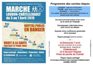 Le Comité de Défense du Groupe Hospitalier Nord-Vienne organise une Marche entre Loudun et Châtellerault du 03 au 07 Avril 2019.
