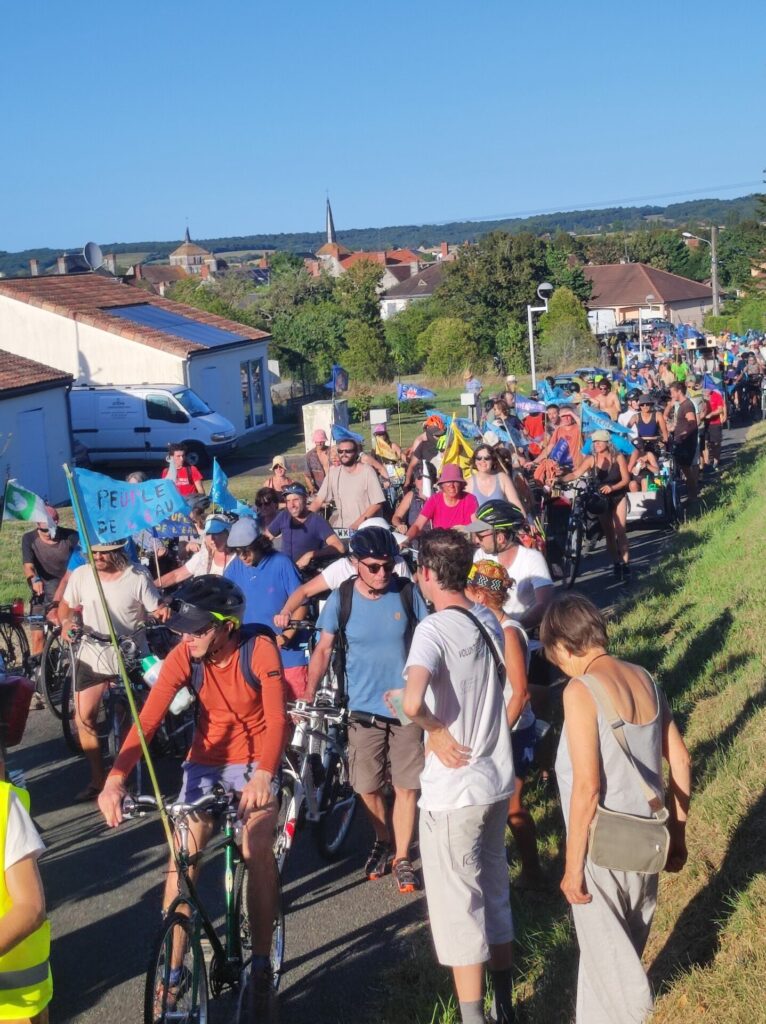 L’organisation de l’étape à Coussay-les-Bois par les membres du convoi et les bénévoles du collectif a été remarquable, la soirée, un grand moment dans une super ambiance : bal folk, cinéma, débats. Une pose importante et nécessaire pour récupérer d’une journée caniculaire.