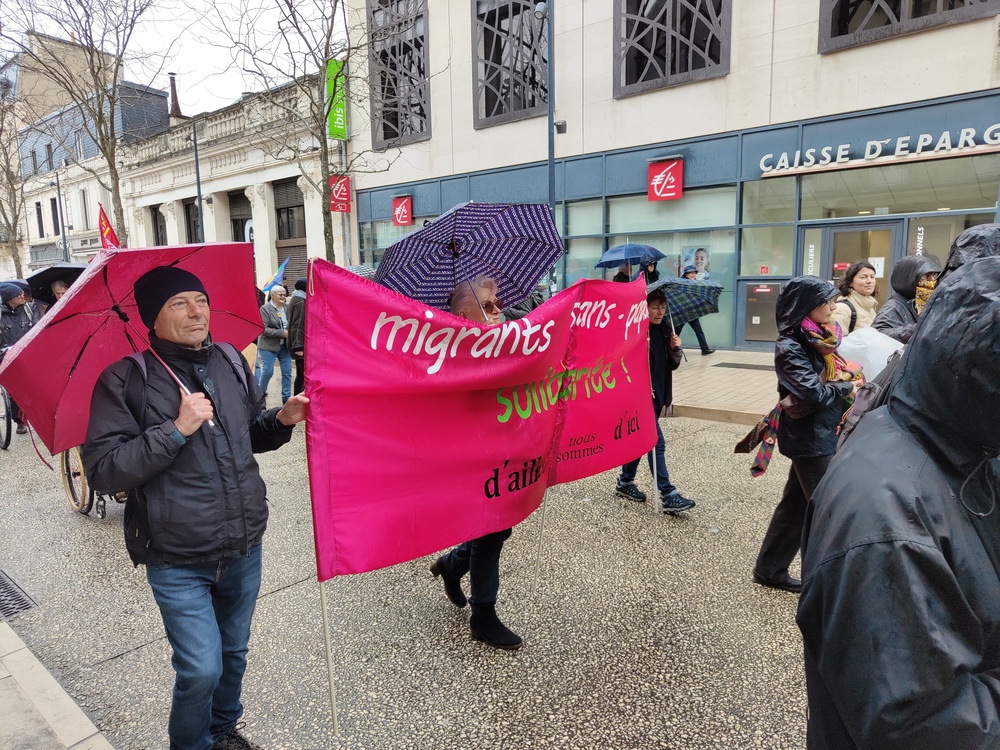 Puis la manifestation est allée à l’essentiel par les rues du centre ville de Poitiers : « solidarité avec les migrants du monde entier » .