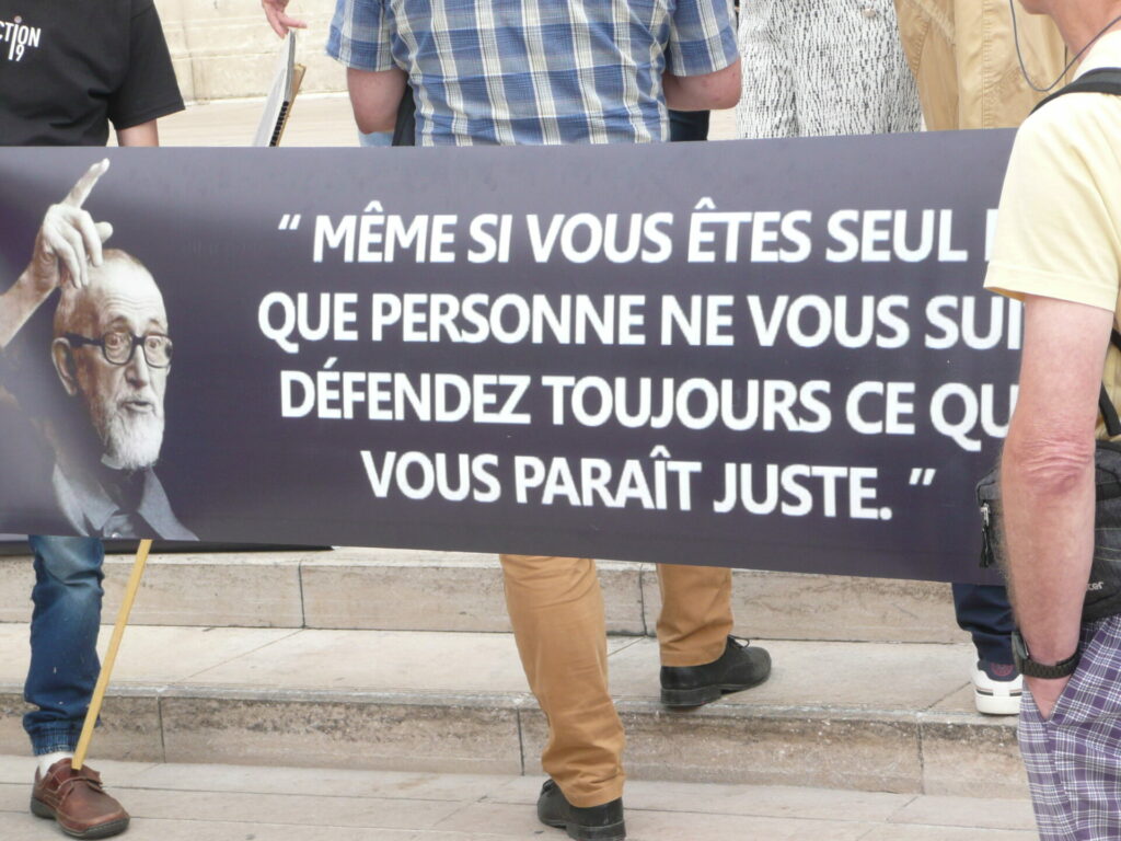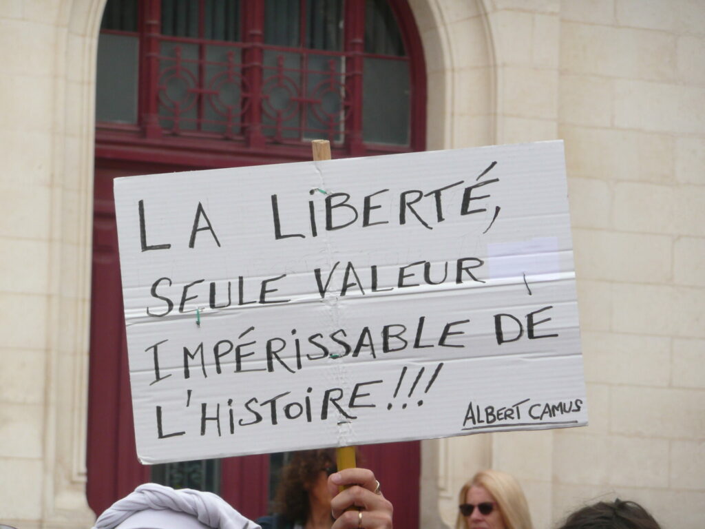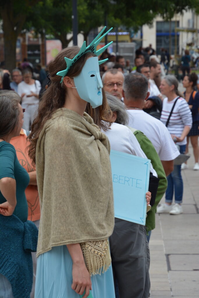 Ce compte-rendu n’a pas vocation à dire le vrai, à convaincre des bienfaits de la vaccination (je le suis) et du pass (du passe ?) sanitaire mais à rapporter, à donner à voir ce troisième rassemblement poitevin appelé (surtout) contre le passe sanitaire justement et « pour la liberté » (vaccinale ? de circuler ? de réfléchir ? de s’opposer ? de s’informer ?…), un mot beaucoup lu et entendu ce samedi 31 juillet sur la place de la mairie à Poitiers.