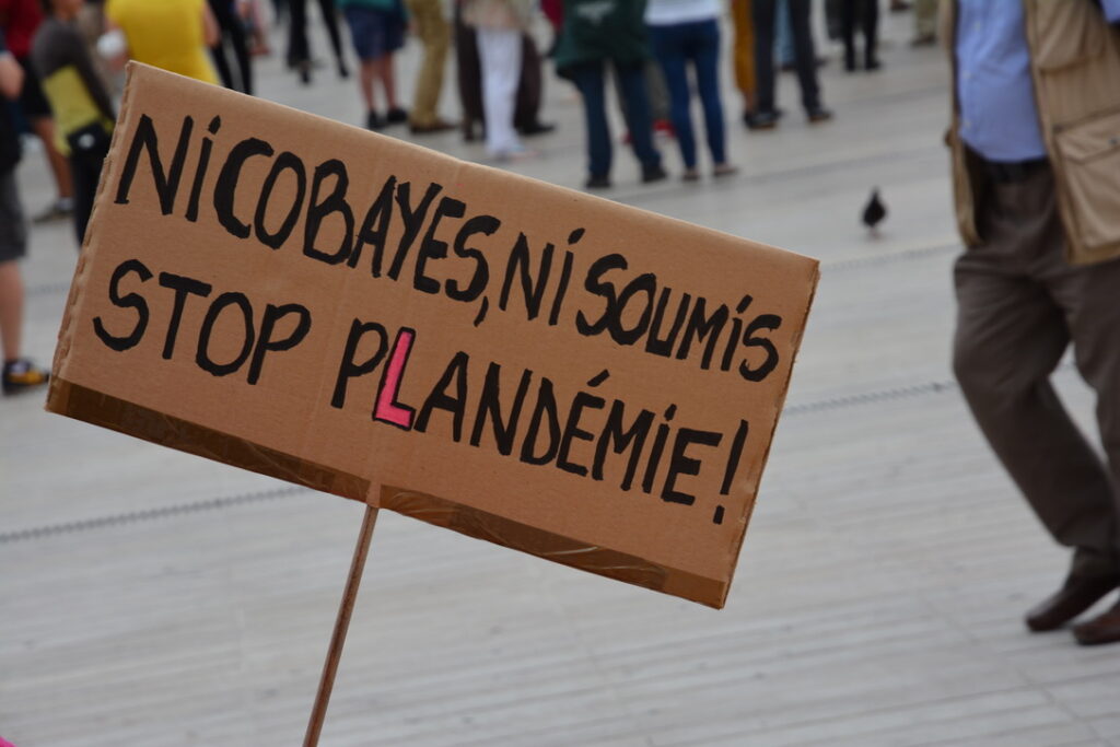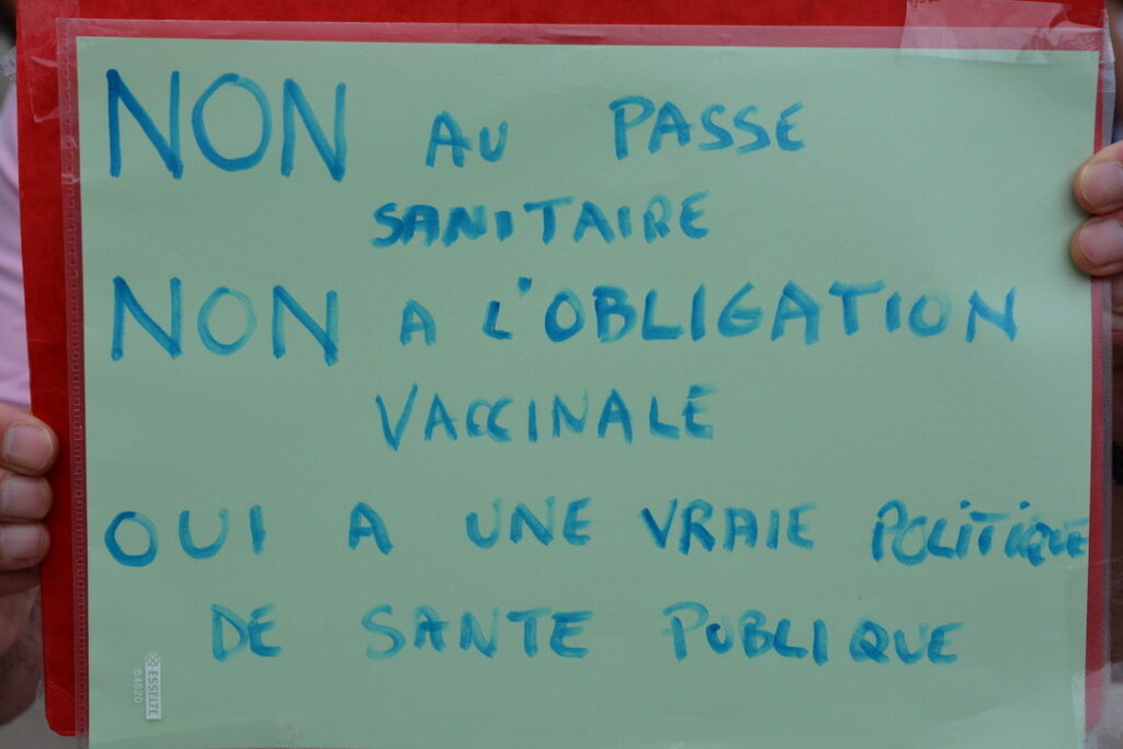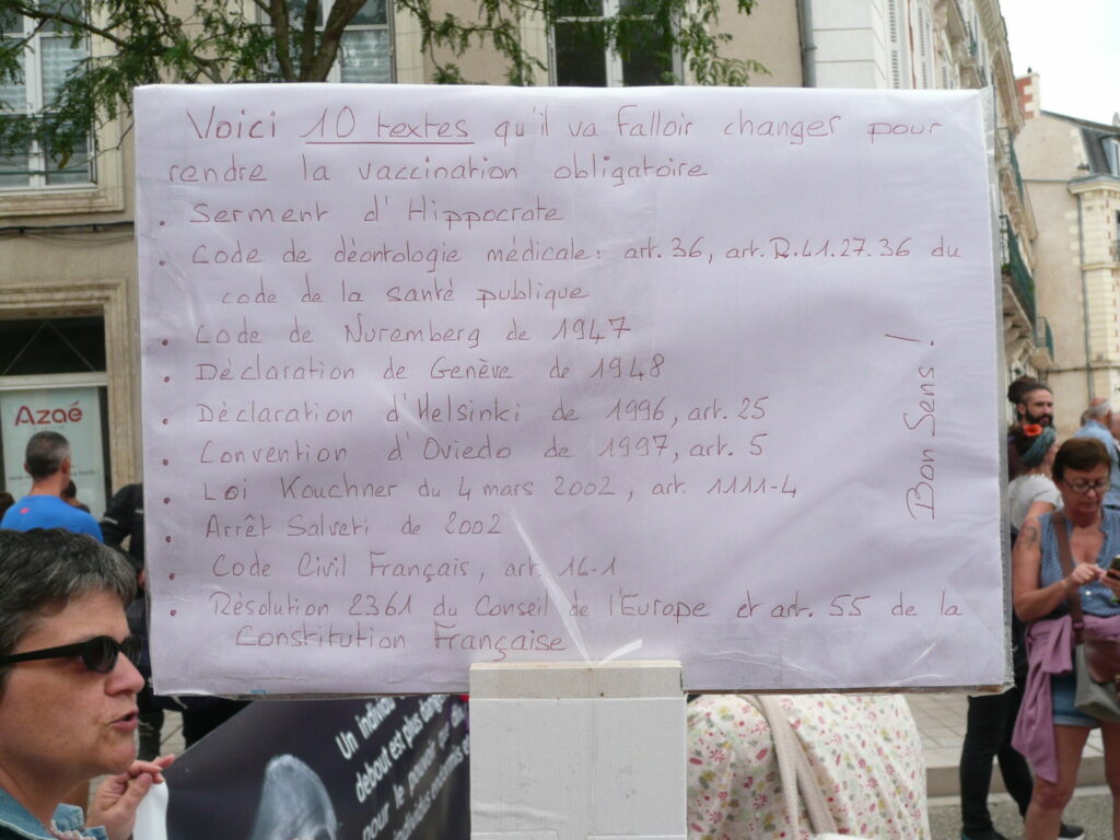 Frange militante donc pour peu que l’on connaisse la vie politico-associative locale : syndicalistes, libertaires, NPA, LFI, CD2R,… mais une grande majorité de personnes venues seules ou en famille, parfois de loin (loudunais, civraisien, châtelleraudais,…) avec moult pancartes illustrant la grande diversité des revendications : la liberté de vaccination, la liberté de choisir, vaccination et enfer (!), contre les licenciements sanitaires, défense des droits humains, etc.