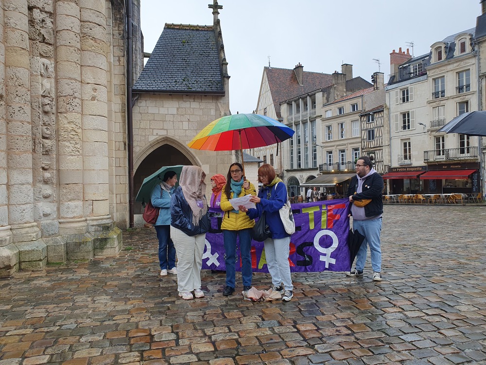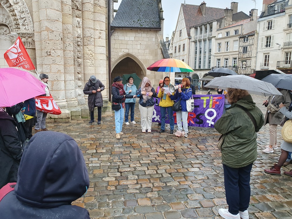 À l’appel du « collectif du 8 mars » se sont retrouvées une cinquantaine de personnes sur la place du marché ce samedi 19 octobre 2024.