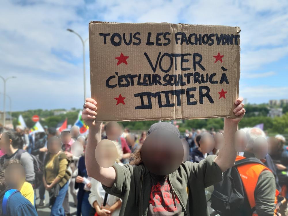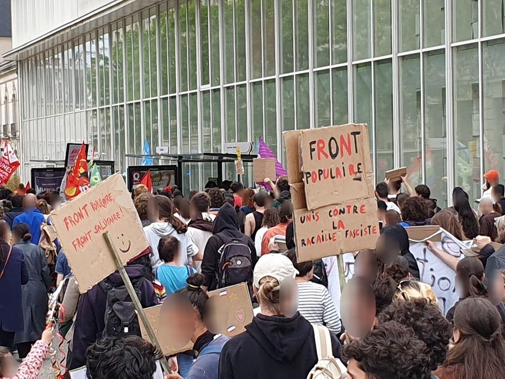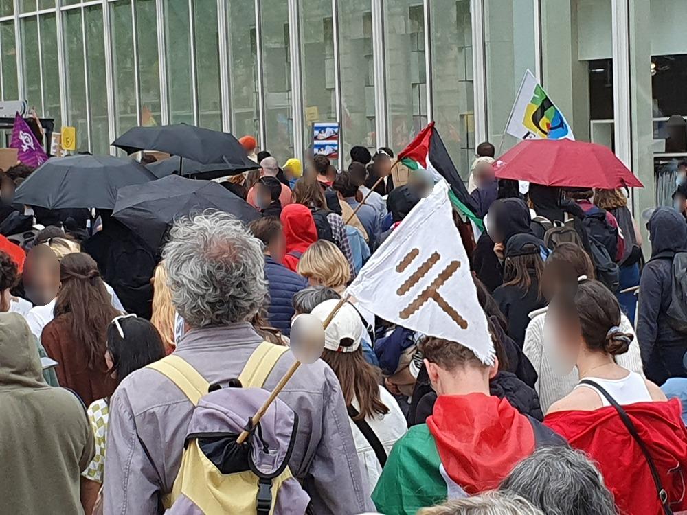 Nous avons flouté les photos qui suivent. Dans le même temps deux policiers photographiaient au téléobjectif les manifestant-es depuis le haut de Rivaud.