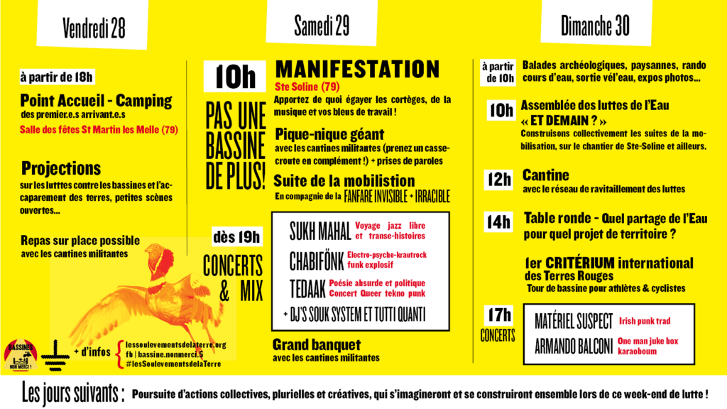 Voilà des exemples à suivre et à accompagner ! Encore merci à lui pour son accueil et sa solidarité à notre lutte ! Il est possible de nous rejoindre sur place en prenant la D15 entre Sainte-Soline et Pers (46.23959° N, 0.05181°E) afin de préparer la manifestation de ce week-end 🥳