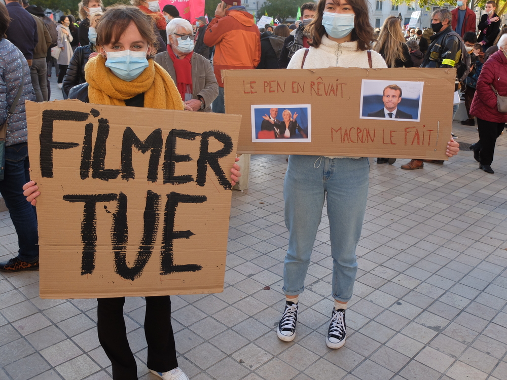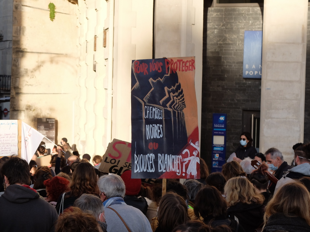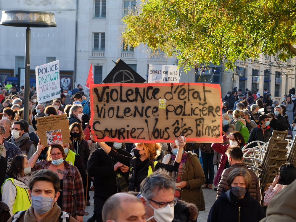 La situation s’est un peu tendue lorsque les manifestants se sont trouvés bloqués par les gendarmes mobiles au bout de la rue des Ecossais, à côté du commissariat.