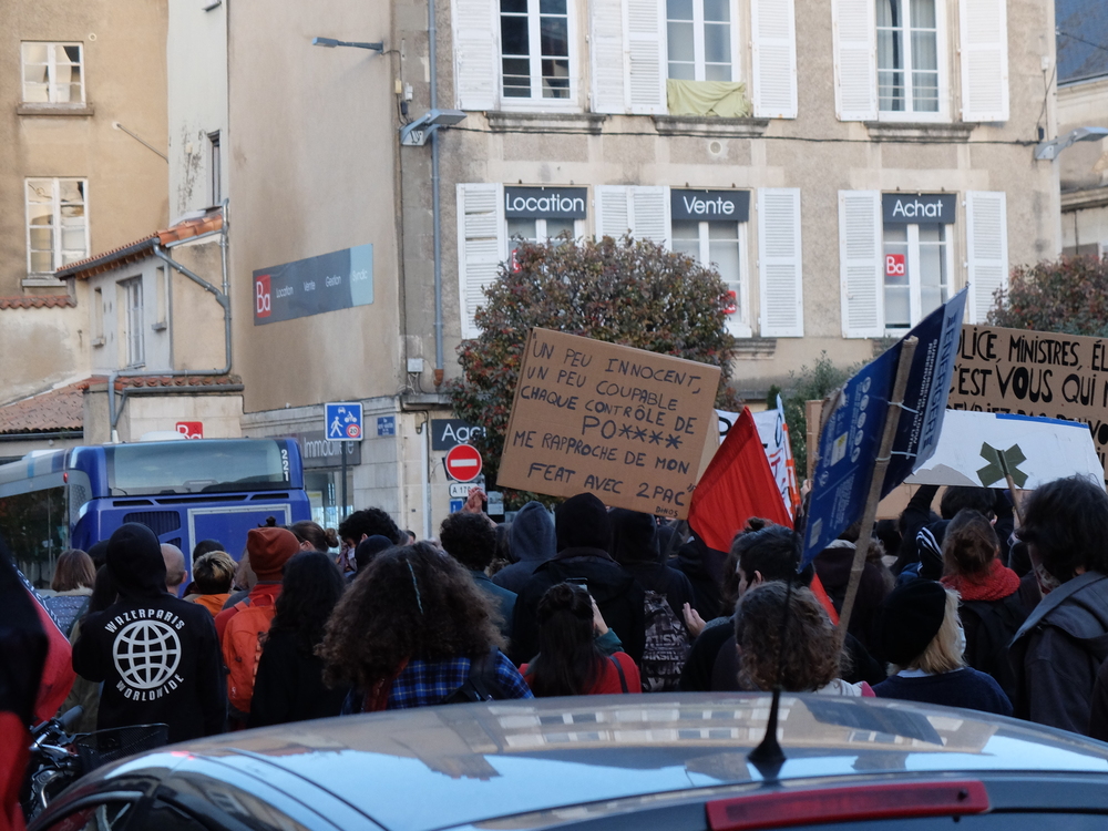 Les manifestants restants sont repartis en cortège dans les rues de Poitiers (moins d’un millier) en passant par le commissariat suivis par la BAC.