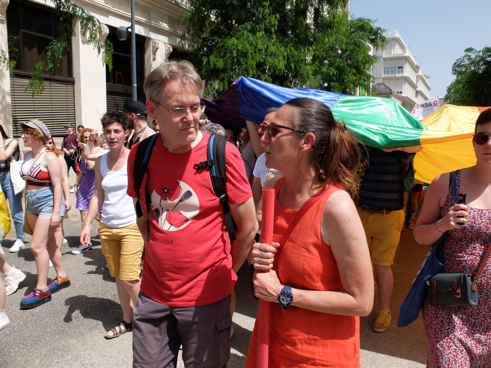 On y rencontrait Lisa Belluco, la candidates aux élections législatives de la NUPES (Nouvelle Union Populaire Écologique et Sociale) de la 1ère circonscription qui dansait à côté de son suppléant :