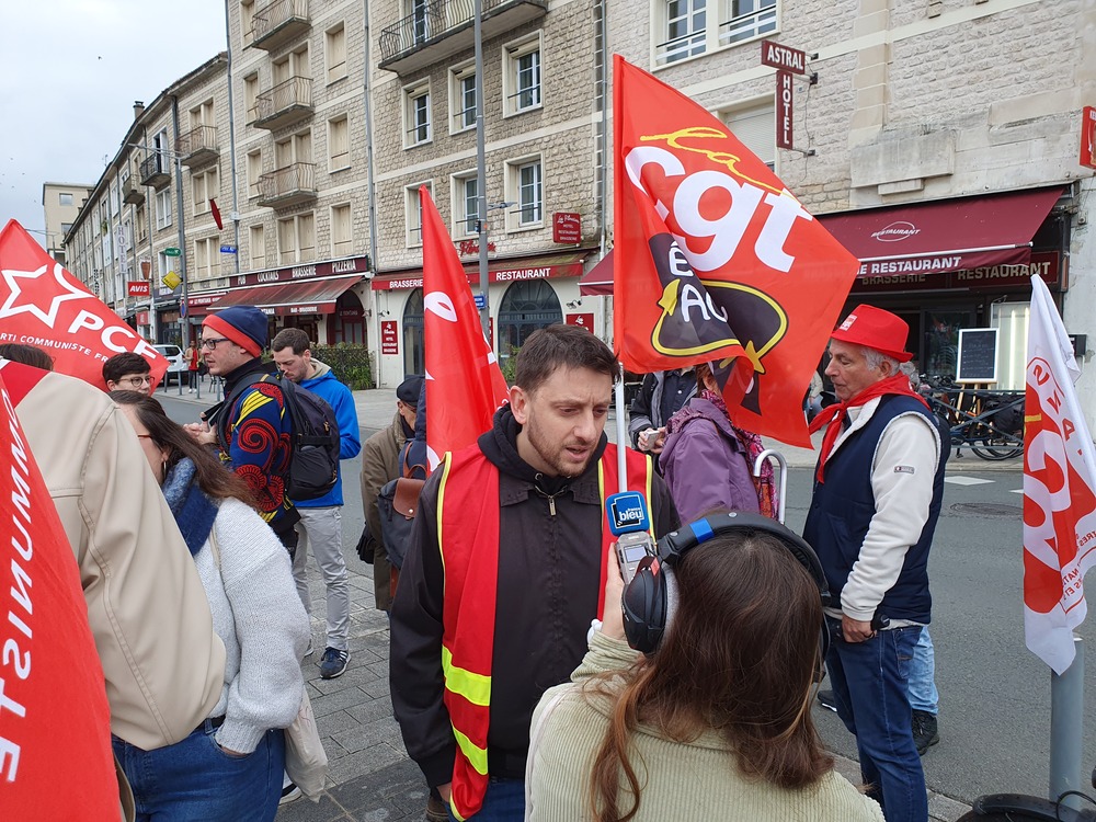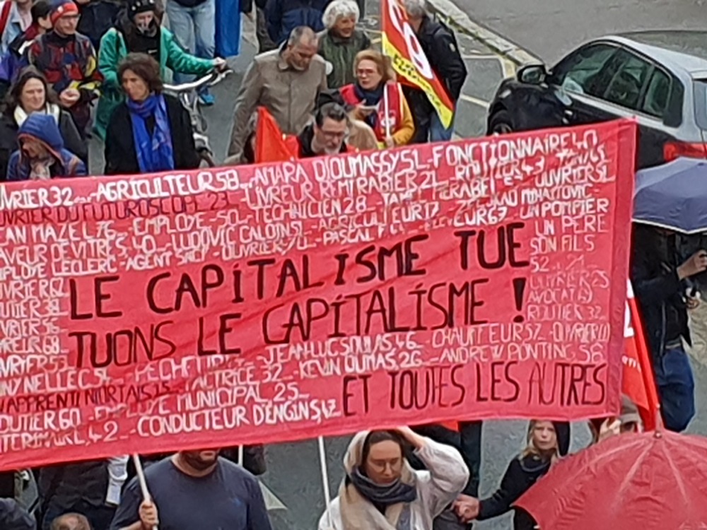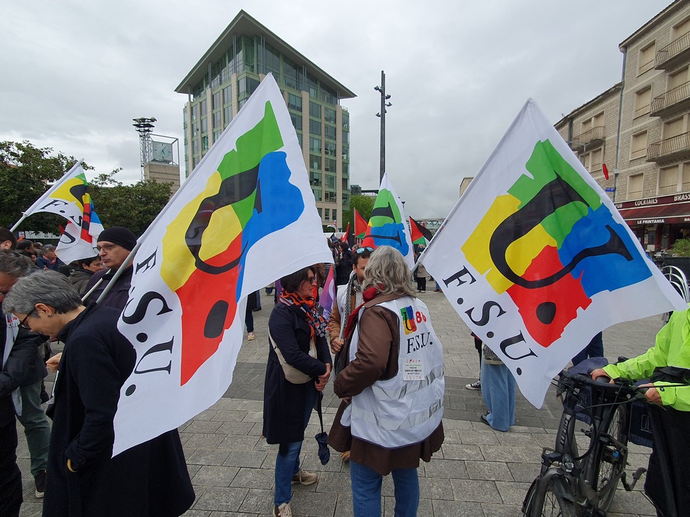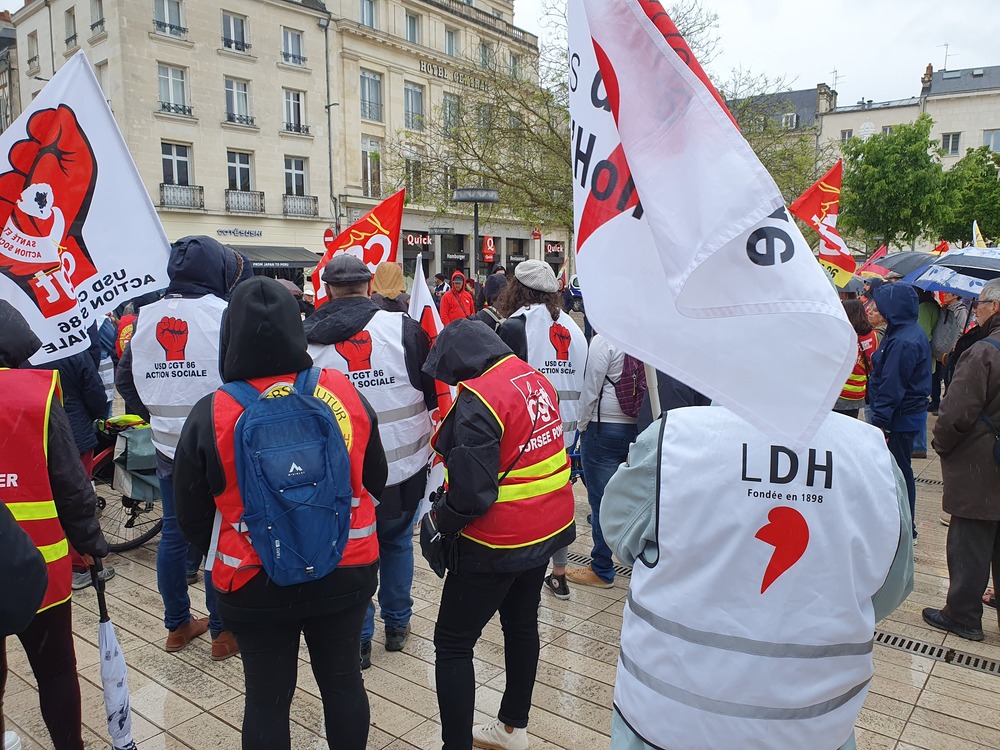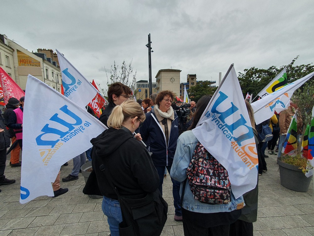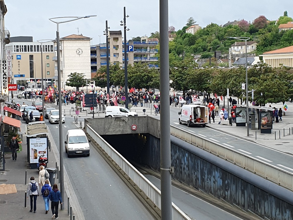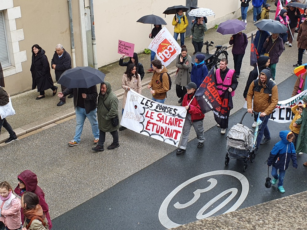 Pourtant cela avait mal commencé par une annulation des concerts prévus dans l’après-midi, pour cause de mauvais temps. Pourtant nous étions nombreuses et nombreux pour le défilé revendicatif. Plus d’un gros milliers, 1400 donné par l’intersyndicale. Et l’ambiance était à la fête, à la détermination avec un zeste de rage : un joli cocktail.