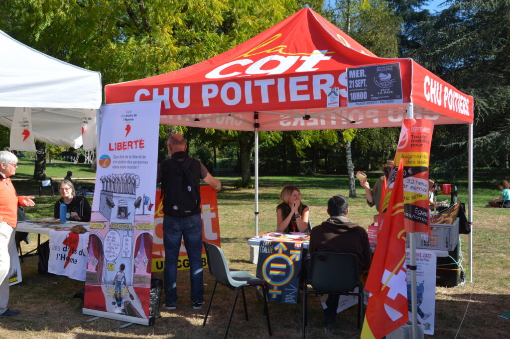 Grâce à Jean-Marie Girier, préfet de la Vienne (non, là on rigole !) l’édition 2022 du « Village des alternatives » a connu un franc succès, tant dans sa mise en place, grâce au travail de dizaines de bénévoles, vendredi 16 septembre que samedi 17 et dimanche 18 septembre avec la présence de milliers de participant.es. Du monde donc pour les animations proposées, aux conférences et ateliers, aux concerts et aux stands des dizaines d’associations et mouvements présents.